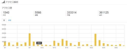 8月から始めたこのブログですが、8月の末にProにして約一ヶ月経過しました。はてなブログのアクセス解析によると、9月は約33万アクセスでした。驚いたことに、開始してから毎日欠かさず何かしら記事をアップしていて、我ながらなかなか頑張っているなぁ、…